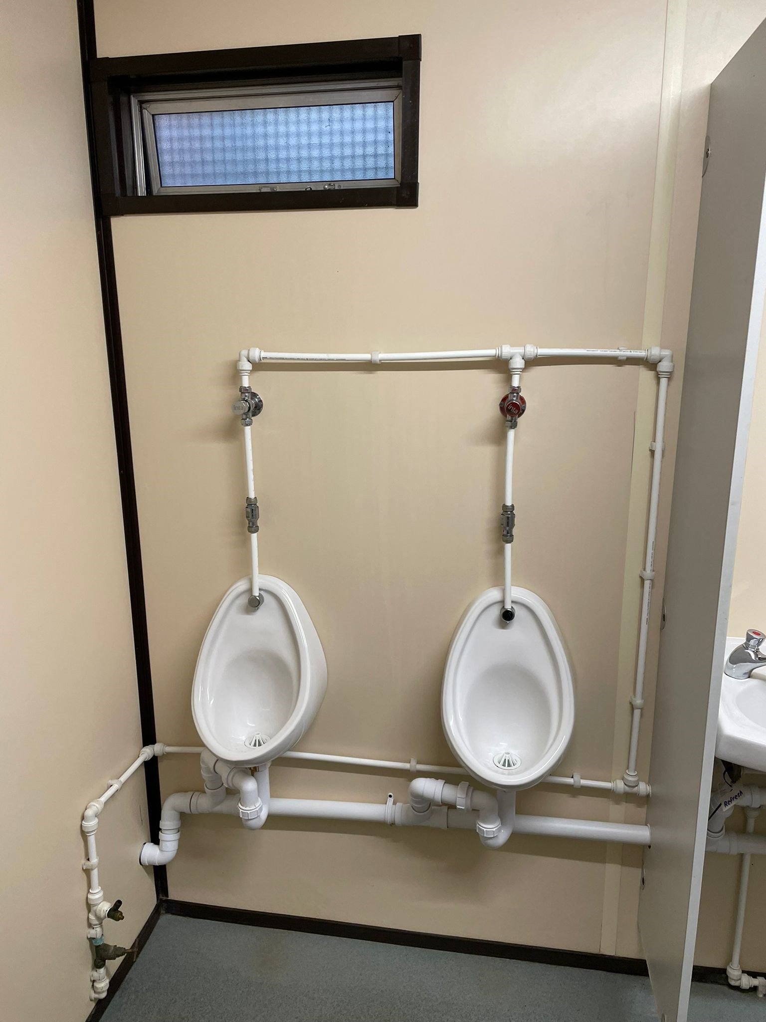 - Anti-vandal Jack leg toilet block consisting of 2 mens cubicles with urinals and wash basins; and 3 female cubicle with wash basin.